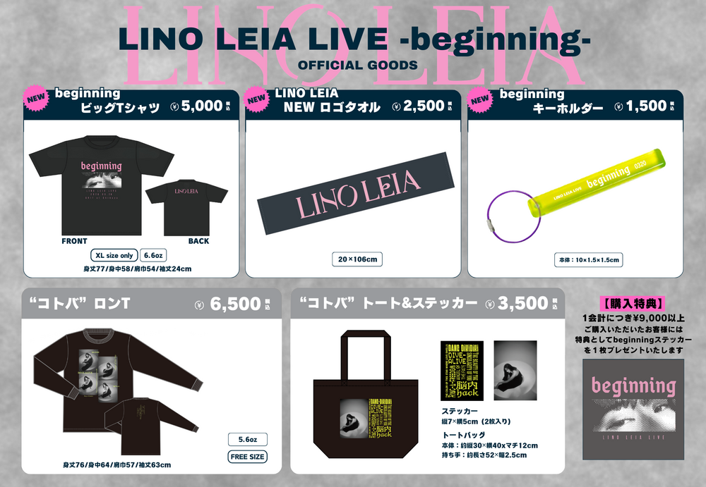 3/20(金祝)開催のライブ「LINO LEIA LIVE -beginning-」会場にて、オフィシャルグッズの販売が決定!ご来場の記念にぜひご利用ください♪